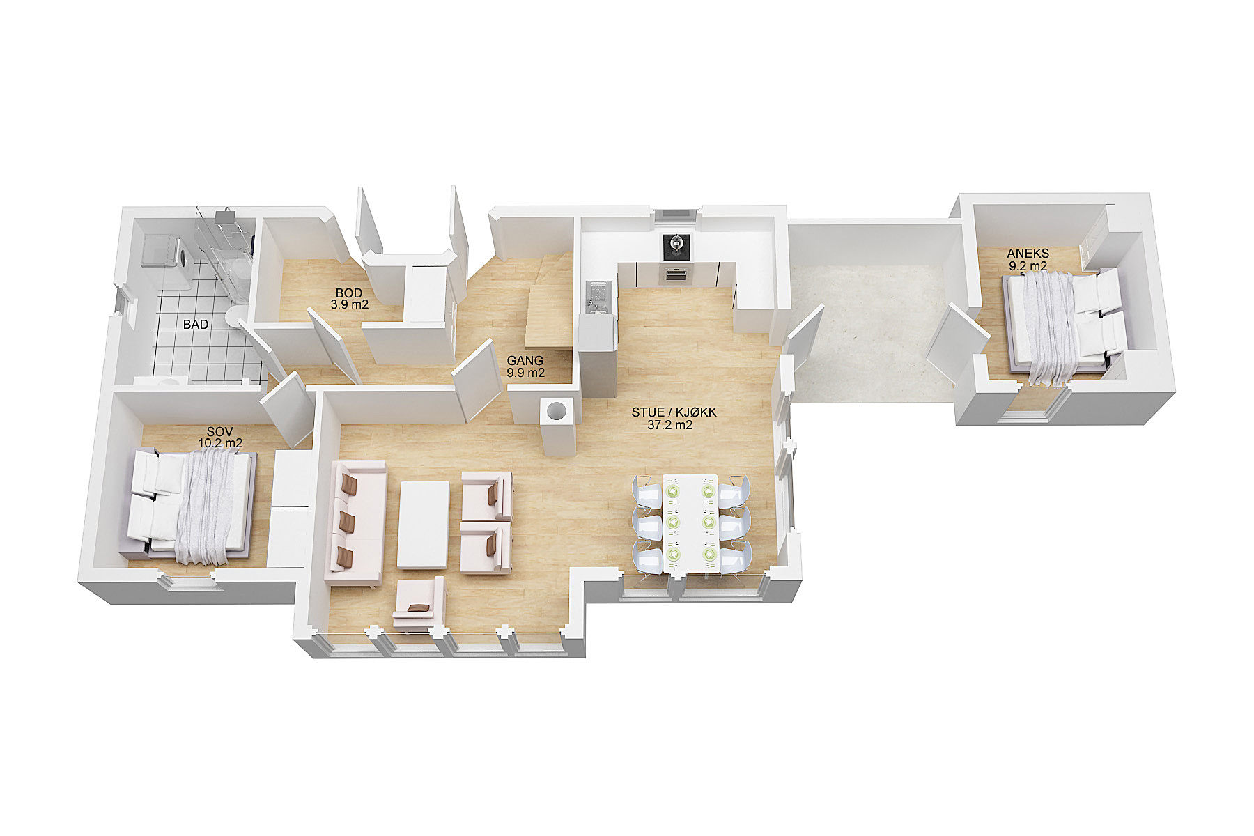 Grunnflate: 99,6 kvm